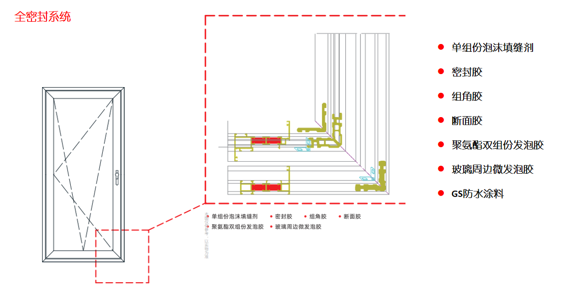單組份泡沫填縫劑、硅酮密封膠、聚氨酯組角膠。